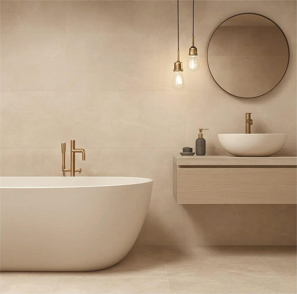 Faianta rectificata tip piatra, Motto Bone 30x90x0.7 cm, bej, finisaj mat